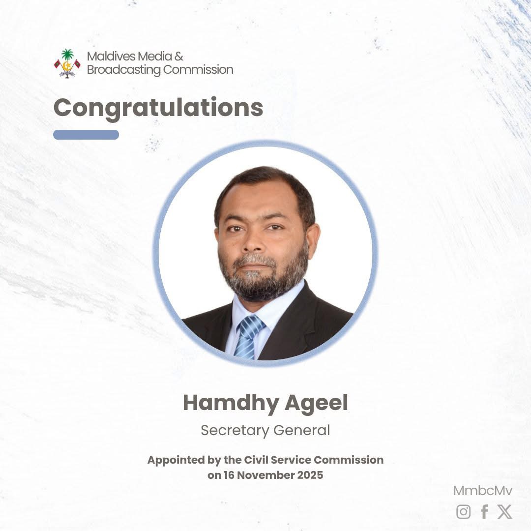 އެމްއެމްބީސީން ސޯޝަލް މީޑިއާގައި ކުރި ޕޯސްޓެއްގައި ވަނީ ސިވިލް ސާވިސް ކޮމިޝަން (ސީއެސްސީ) އިން އެ ކޮމިޝަނުގެ އެސްޖީ ކަމަށް ހަމްދީ އައްޔަންކުރިކަން އިއުލާންކޮށްފަ އެވެ.