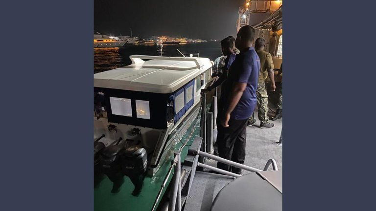 އެމްއެންޑީއެފުން ހާމަކުރާ ގޮތުގައި ކޯސްޓްގާޑް ޝިޕް ޣާޒީން މި ލޯންޗުގައި ބޮޑުވި ދިޔަގަނޑު އެއްކޮށް ހިއްކައި، އެ މަސައްކަތް ނިންމާލާފައިވަނީ މިރޭ 20:45 ހާއިރުއެވެ.