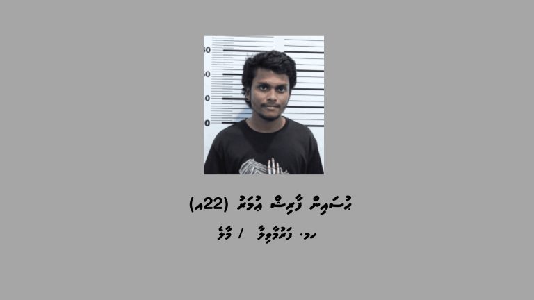 މިިމައްސަލައާ ގުޅިގެން ހައްޔަރުކޮށްފައިވަނީ ހމ. ފަރުމާވިލާ / މާލެ، ޙުސައިން ފާރިޝް ޢުމަރު (22އ) އެވެ. ކޯޓުން ވަނީ އޭނާ 7 ދުވަހުގެ މުއްދަތަކަށް ބަންދުކުރުމަށް އަމުރުކޮށްފައެވެ.