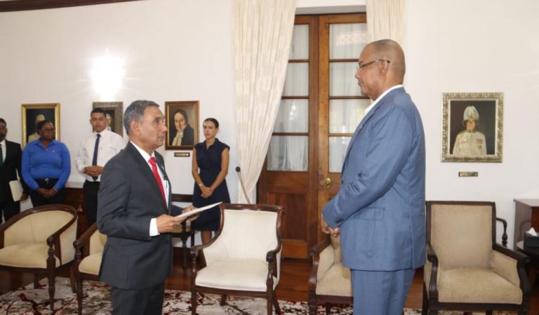 ރާއްޖެއިން ސީޝެލްސްއަށް ކަނޑައަޅުއްވާފައިވާ ސަފީރު މަސްޢޫދު އިމާދު ސަފީރުކަމުގެ ފަތްކޮޅު އެޤައުމުގެ ރައީސް ޑރ. ޕެޓްރިކް ހަރމިނީއަށް އަރުވައިފިއެވެ.