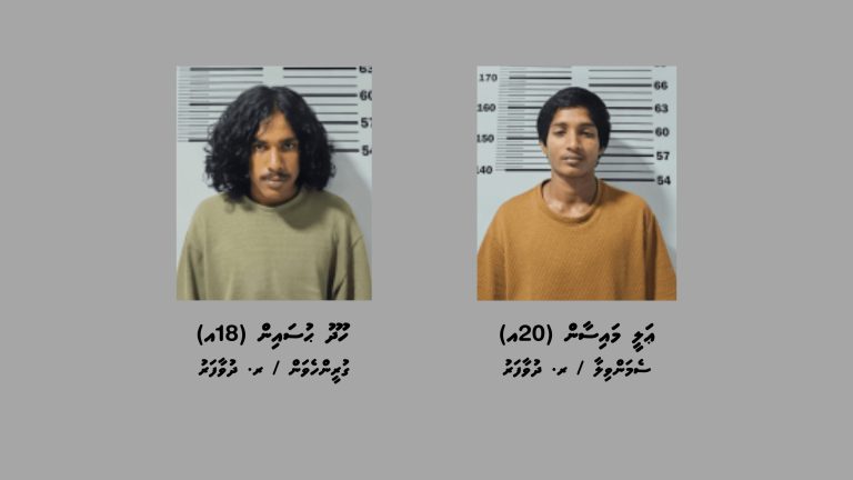 މިގޮތުން ފުލުހުން ހައްޔަރުކޮށްފައި ވަނީ ރ. ދުވާފަރު / ސެމަންވިލާ ، ޢަލީ މައިސާން (20އ) އާއި ރ. ދުވާފަރު / ގުރީންހެވަން، ހޫދު ޙުސައިން (18އ) އެވެ. މި މައްސަލައާ ގުޅިގެން މި ދެ މީހުންވެސް ހަތް ދުވަހަށް ބަންދު ކުރުމަށް ކޯޓުން ވަނީ އަމުރުކޮށްފައެވެ.