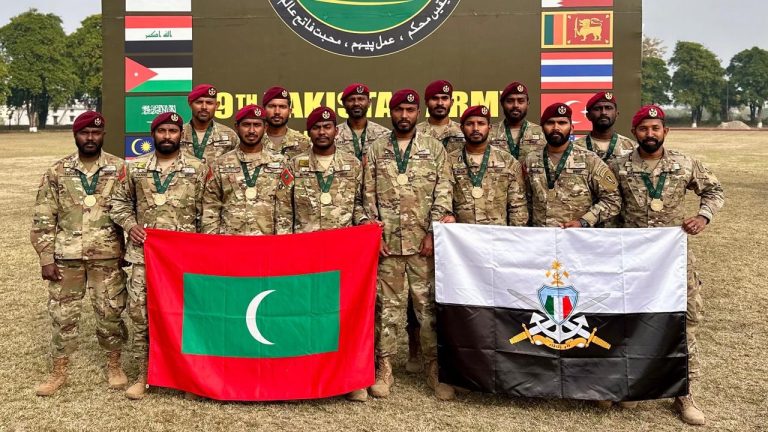 ޕާކިސްތާނުގައި ބޭއްވި 9ވަނަ "އިންޓަރނޭޝަނަލް ޕާކިސްތާން އާމީ ޓީމް ސްޕިރިޓް (ޕެޓްސް) ކޮމްޕެޓިޝަން 2026" ގައި ބައިވެރިވި އެމްއެންޑީއެފްގެ ޓީމުން ރަން މެޑެލި ހާސިލުކުރުމާ ގުޅިގެން ރައީސް ޑރ. މުޙައްމަދު މުޢިއްޒު ސިފައިންގެ ޓީމަށް މަރުޙަބާ ދަންނަވައިފިއެވެ.