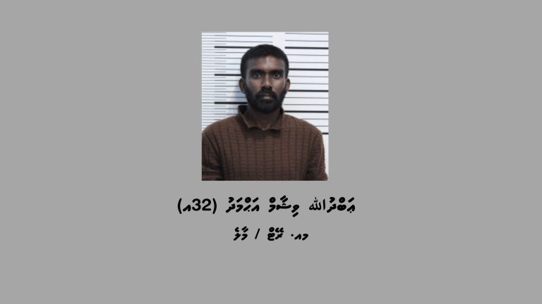 ޢަބްދުﷲ ވިޝާމް އަޙްމަދު ހޯދަމުންދަނީ އޭނާގެ މައްޗަށް ހުށަހެޅިފައިވާ ޑައިމޯފިން ޓްރެފިކް ކުރުމުގެ ކުށުގެ މައްސަލައިގެ ނިޔާ ކަނޑައެޅުމަށް ކޯޓަށް ހާޒިރުކުރުމަށް ބޭނުންވެ ހާޒިރުކުރެވިފައި ނުވާތީ، ބަންދުގައި ބަހައްޓައިގެން 2026 މާރިޗު 09 ވަނަ ދުވަހުގެ ހެނދުނު 11:00 އަށް ކްރިމިނަލް ކޯޓަށް ހާޒިރުކޮށްދިނުމަށް ފުލުހުންގެ މައްޗަށް ކޮށްފައިވާ އަމުރާ ގުޅިގެންނެވެ.