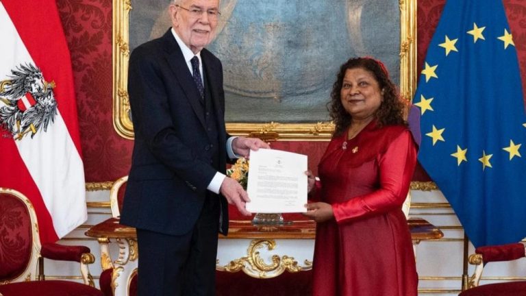 ދިވެހިރާއްޖެއިން އޮސްޓްރިއާއަށް ކަނޑައަޅާފައި ހުންނަވާ ނޮން-ރެސިޑެންޓް ސަފީރު ޑޮކްޓަރ ސަލްމާ ރަޝީދު އެކަމަނާގެ ސަފީރުކަމުގެ ފަތްކޮޅު އޮސްޓްރިއާގެ ރައީސް، އެލެކްސެންޑަރ ވޭން ޑަރ ބެލެން އަށް މިއަދު އަރުވައިފިއެވެ.